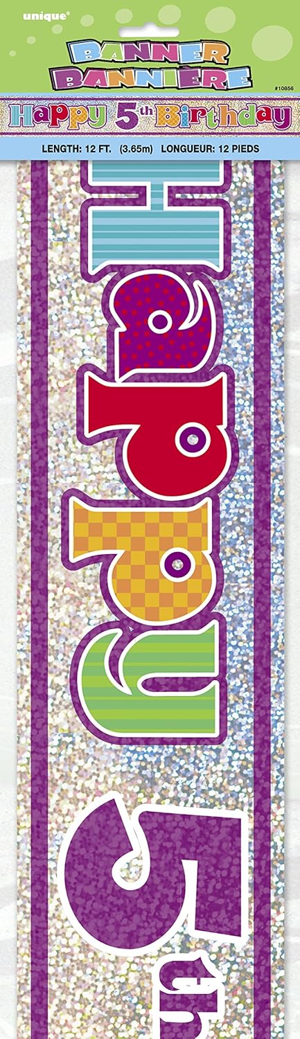 Product Description Celebrate a birthday in sparkling style with this Prism Happy 4th Birthday Banner. Featuring "Happy 4th Birthday" text in bright, vibrant colours on shiny hologram foil, this charming party banner is an ideal choice for any child's 4th birthday party. The foil banner can be hung easily in an archway or above your party table, or outside your party room to direct your guests to the right location. Set Contains: 1 x Banner