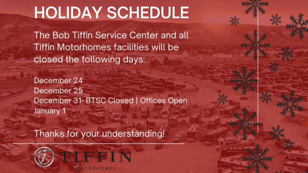 Shop replacement parts, hardware, and many accessories for your Tiffin Motorhome, and have them shipped directly to you!